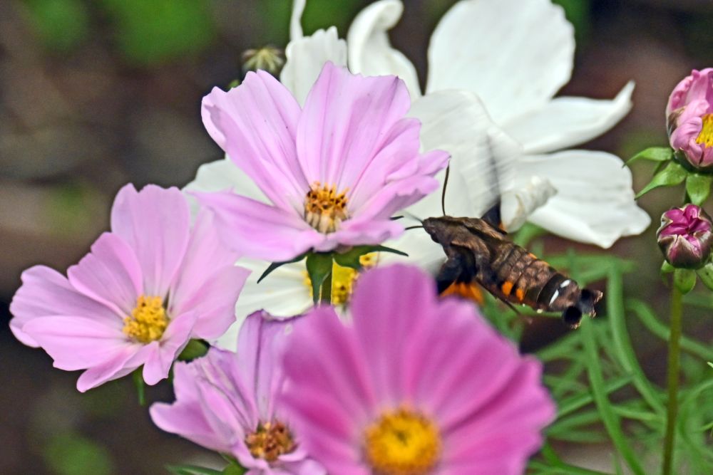 コスモス 夕方になっても活動中のホシホウジャク