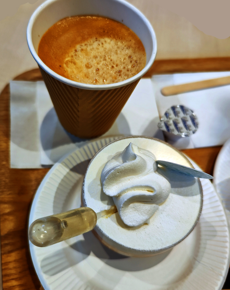 珈琲に映る空と雲 図書館のテラスで、まったり時間 2023/04/06 スマホ写真 |